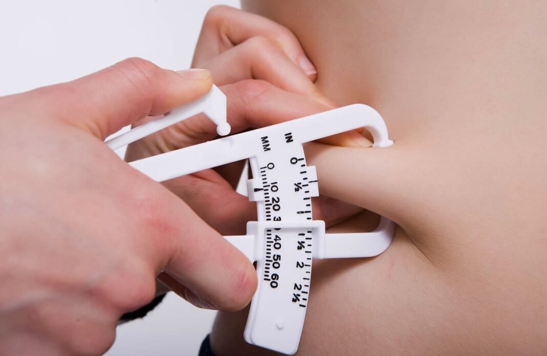 Na mensuração de percentual de gordura através das dobras cutâneas, poderemos ter valores aproximados da composição corporal que é aferido através da espessura em milímetros da camada de gordura, sendo utilizado um adipômetro conhecido também como compasso de dobras cutâneas.