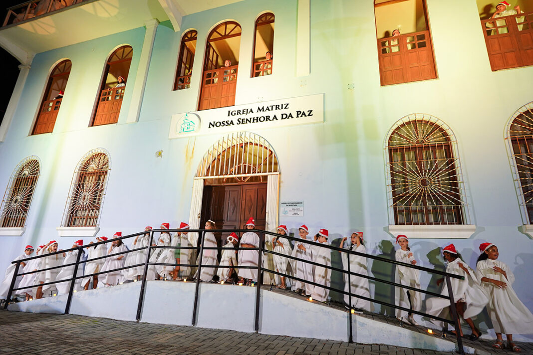 Apresentação musical envolvendo 43 crianças anunciando o nascimento de Jesus. |