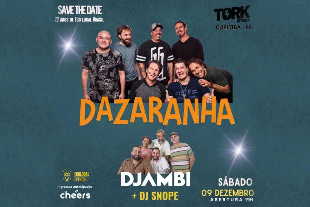 O evento Save the Date – Eco Local será no dia 09 de dezembro no Tork and Roll, em Curitiba e contará com outras ativações além dos shows com as bandas Dazaranha e Djambi e do DJ Snope.