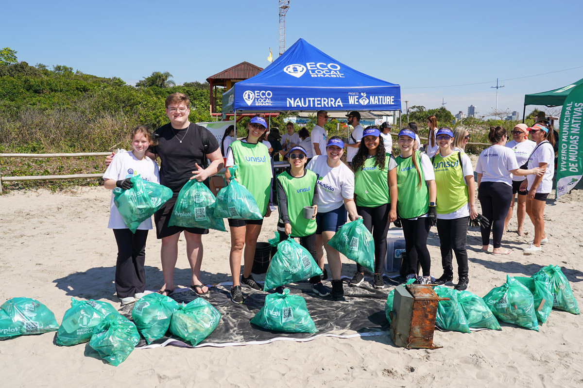Evento: ação de limpeza de praia promovida pela empresa Nauterra, em parceria com a ONG Eco Local Brasil. Esta data visa mobilizar voluntários em todo o mundo para limpar cidades, praias, parques e outros espaços, sendo uma iniciativa para conscientizar a população sobre os problemas do descarte inadequado de lixo. O evento contou com mais de 120 voluntários. | Data: 20.09.2025 – Local: Praia da Atalaia – Itajaí (SC).