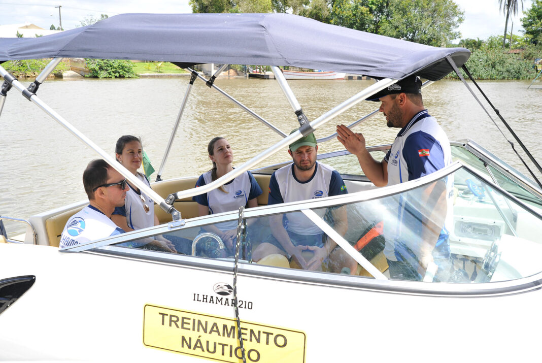 Aula de capacitação náutica nas categorias Arrais Amador e Motonauta, ministrada pelos instrutores Guiie Lüebke e Robledo Peixoto.