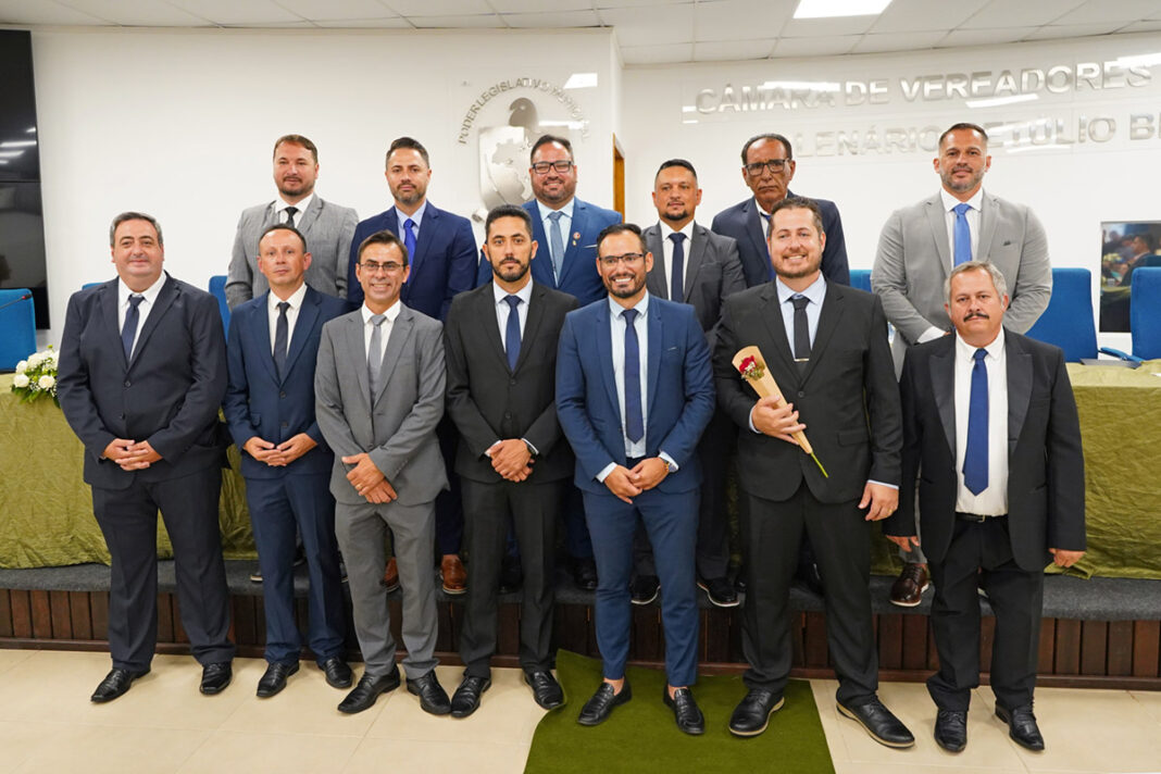 Evento: cerimônia de posse do prefeito, vice-prefeito e vereadores do município de Barra Velha. Prefeito e vice: Daniel Pontes da Cunha e Juliano Bernardes. Vereadores empossados: DIEGO MORAES – RUI MACHADO – CELSO DA SILVEIRA JUNIOR – RONNYE PETERSON – MARCIEL BERLIN – CAIO PINHEIRO – CLAUDEMIR DA SILVA – RUBENS FRANCISCO – NIVALDO RAMOS – BASÍLIO SILVA – NELSON FEDER JR. | Data: 01.01.2025 – Local: Câmara Municipal de Vereadores de Barra Velha (SC).