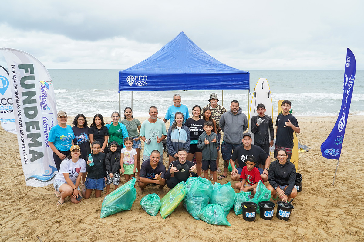 Evento: primeira ação do projeto Verão Praia Limpa Eco Local Brasil. A ONG iniciou a jornada deste projeto no município de Barra Velha (SC) e tem como objetivo, além de colaborar com a limpeza das praias, levar informações aos voluntários a respeito da preservação e incentivar as crianças a cultivarem boas práticas. Para isso, a ONG vai doar um brinquedo feito com resíduos retirados das próprias ações a cada criança que encher um copo com microlixo. O projeto se estende durante o verão por diversas praias de Santa Catarina e do Paraná. | Data: 11.01.2025 – Local: praia do Tabuleiro – Barra Velha (SC).